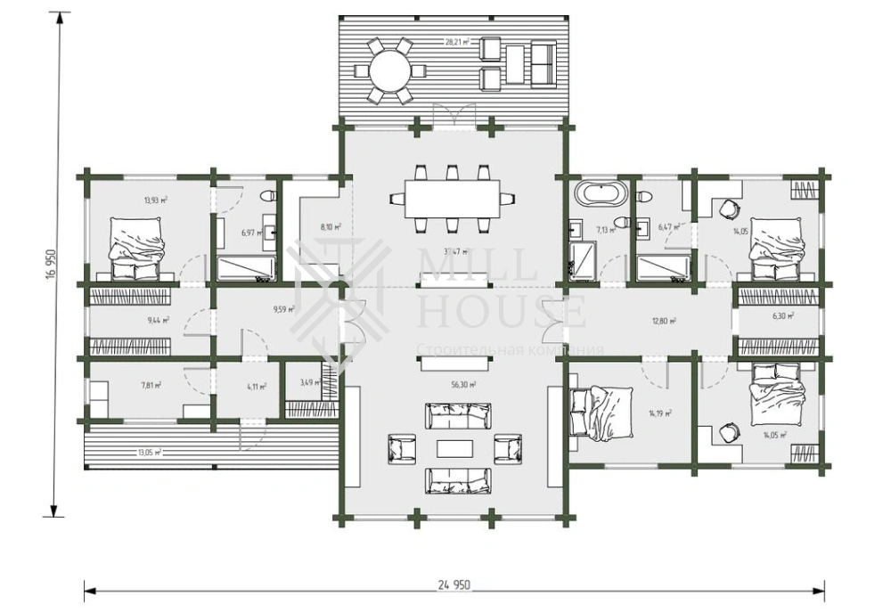 - Дом спроектирован под натуральное дерево, что гарантирует экологичность и отличную теплоизоляцию