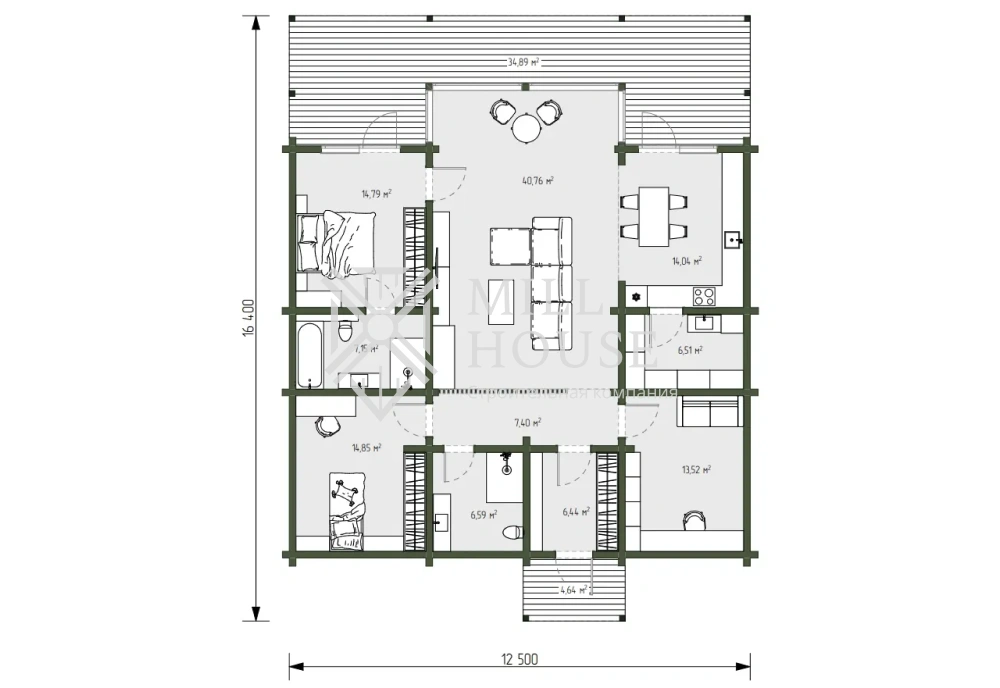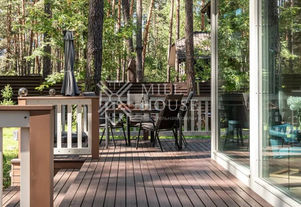 - Крытая терраса площадью 4,68 м² для защиты от непогоды и комфортных семейных посиделок
