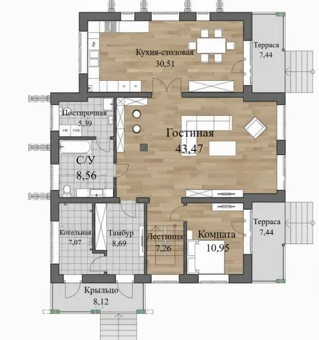 - Терраса — 7,44 м²