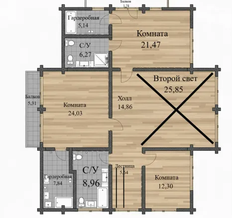 - Второй свет — 25,85 м²