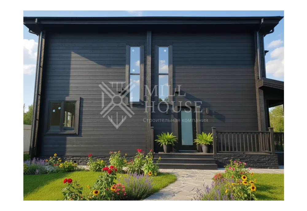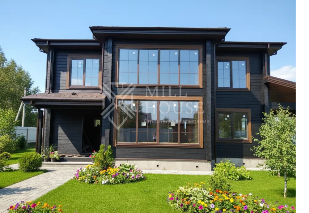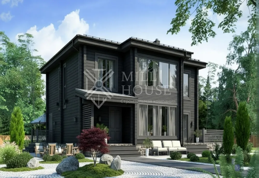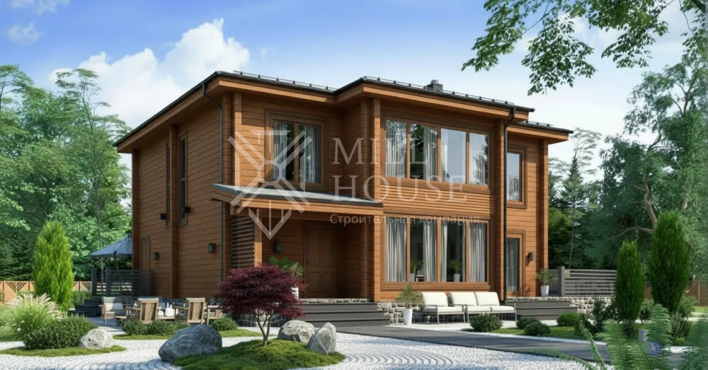 Это просторный двухэтажный дом в лесном стиле с общей площадью 255 м², предназначенный для комфортного проживания семьи. Он сочетает современные удобства с элементами природы, включая террасы и веранды для отдыха на свежем воздухе.