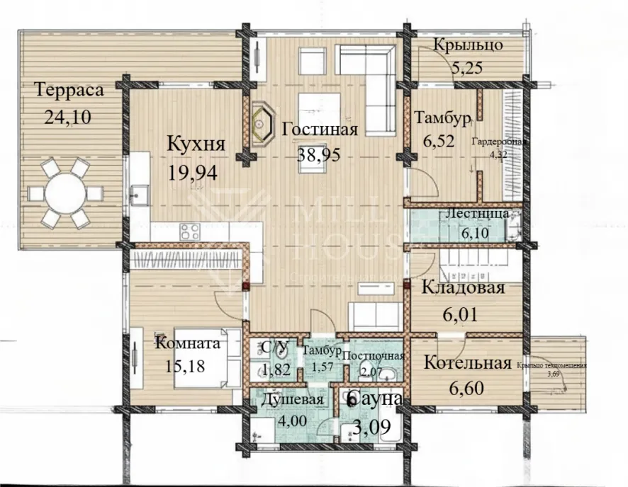 - Терраса — 24,10 м²