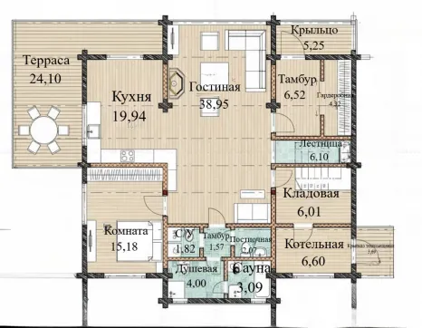 - Гостиная — 38,95 м²