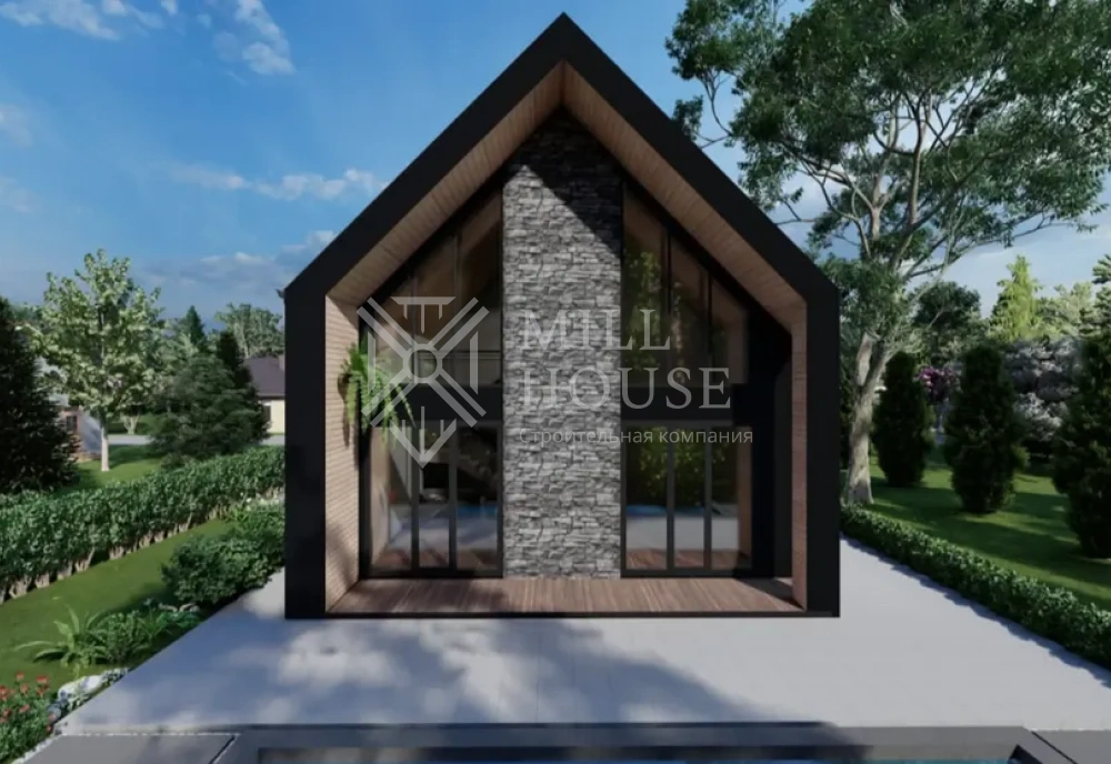 Мансардный этаж — это светлый и просторный зал, условно разделённый на две части: около 70% площади занимают две спальни, санузел и коридор, а 30% — эффектный второй свет над кухней-студией, особенно ярко подсвеченный панорамными окнами. Такой дизайн наполняет дом природным светом, создавая ощущение лёгкости и бесконечности.