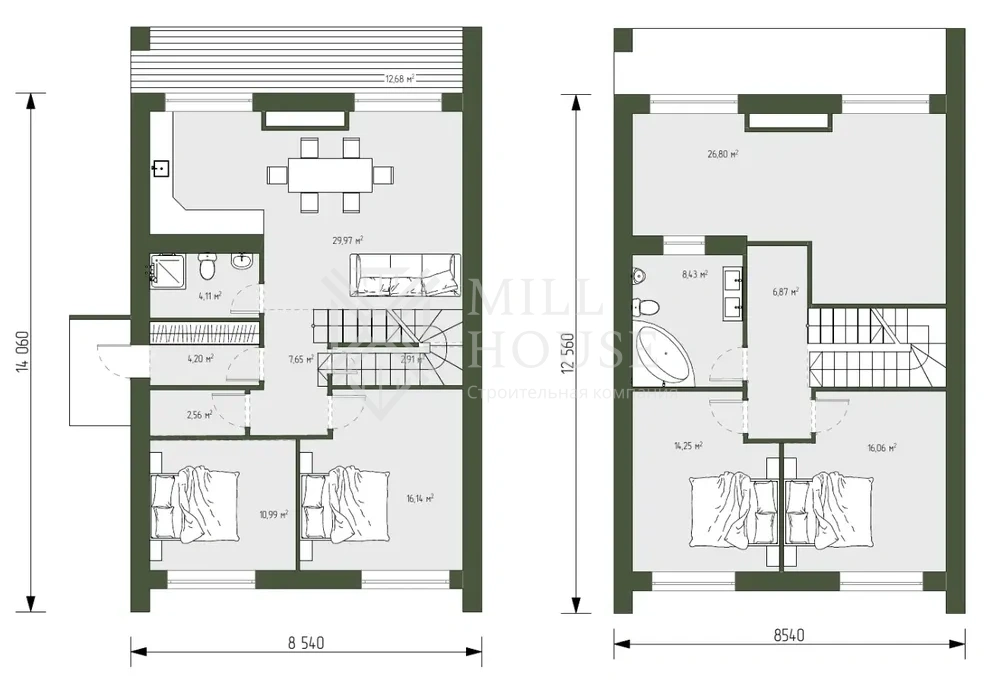 Этот дом специально спроектирован для комфортной жизни семьи из 4–6 человек. Он отражает дух лермонтовской поэзии — мощный и в то же время деликатный, с выразительными пространствами и тёплой атмосферой уюта.