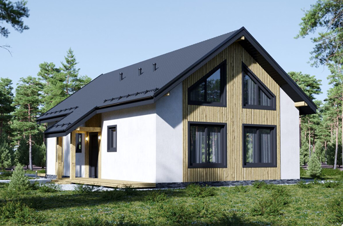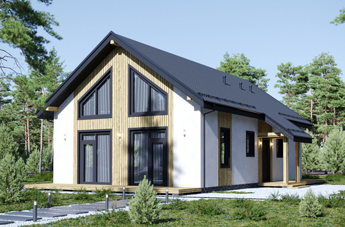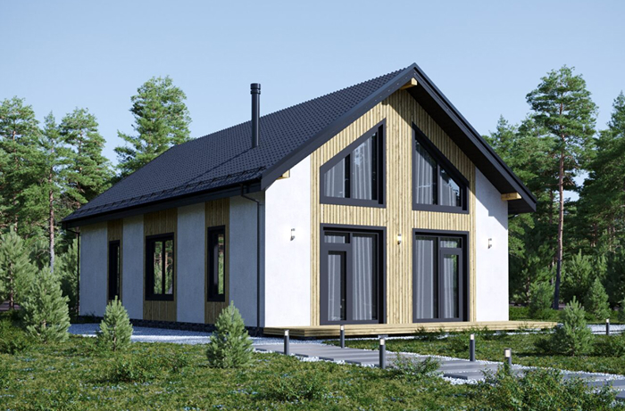 - Элегантность вне времени: Архитектура коттеджа сочетает в себе современные тенденции и проверенную классику. Выразительный фасад, отделанный качественными материалами, высокие двускатные крыши и просторные панорамные окна, наполняющие дом солнечным светом, создают неповторимый облик.