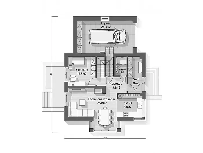 Стильный каменный дом – это проект, объединяющий уют, функциональность и надежность, создавая идеальное место для жизни семьи.