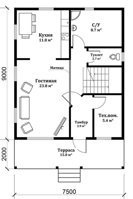 Деревянный дом выглядит привлекательным вариантом для тех, кто ищет компактный, но функциональный загородный дом с элегантным дизайном. Мы позаботились о том, чтобы планировка была максимально эргономичной и удобной, но при этом оставили вам возможность внести свои индивидуальные.