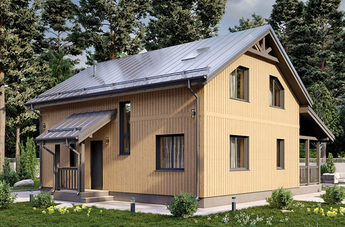 Ищете уютное и стильное решение для загородной жизни? Обратите внимание на проект двухэтажного дома из дерева и стали – это идеальный выбор для тех, кто ценит продуманную эргономику и элегантность в компактном формате. Мы разработали планировку, максимально удобную для повседневной жизни, но при этом оставили вам простор для воплощения собственных идей и создания дома, отражающего вашу индивидуальность.
