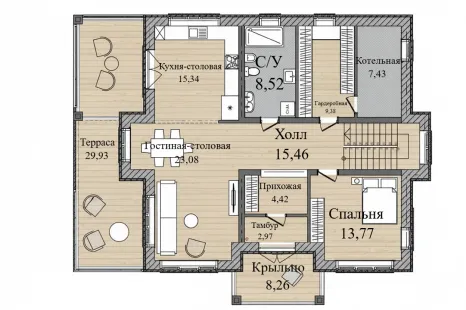 - Крыльцо — 8,26 м²