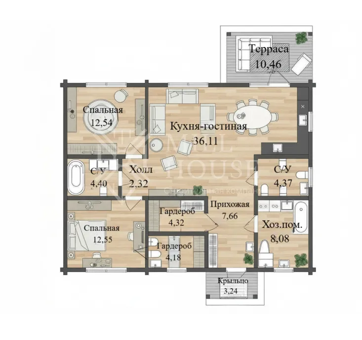 - Терраса — 10,46 м²