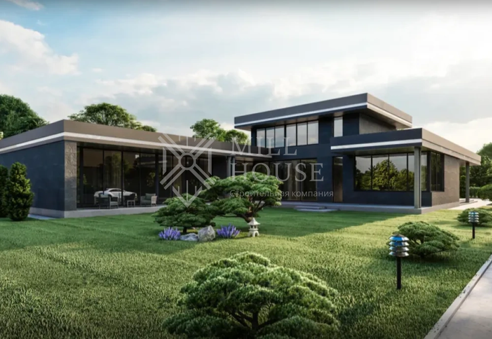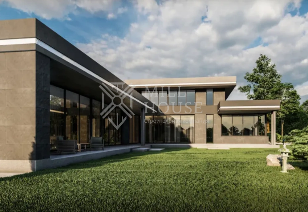 Особое внимание уделено архитектурному пространству: *второй свет* в зоне кухни-гостиной наполняет дом естественным светом, создавая ощущение лёгкости и воздушности. Почти по всему периметру дома предусмотрены выходы на террасу, позволяя легко сочетать внутренний и внешний комфорт.