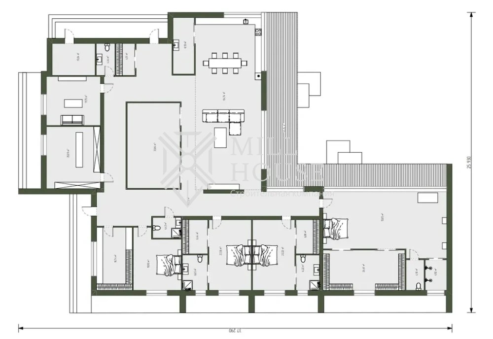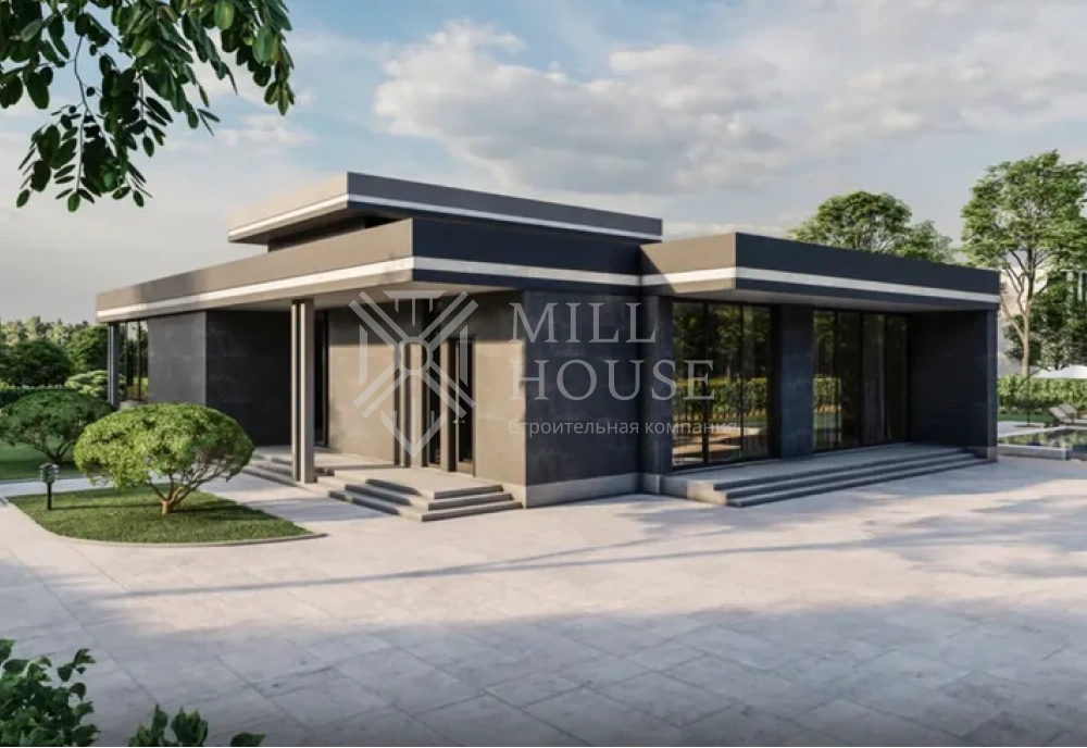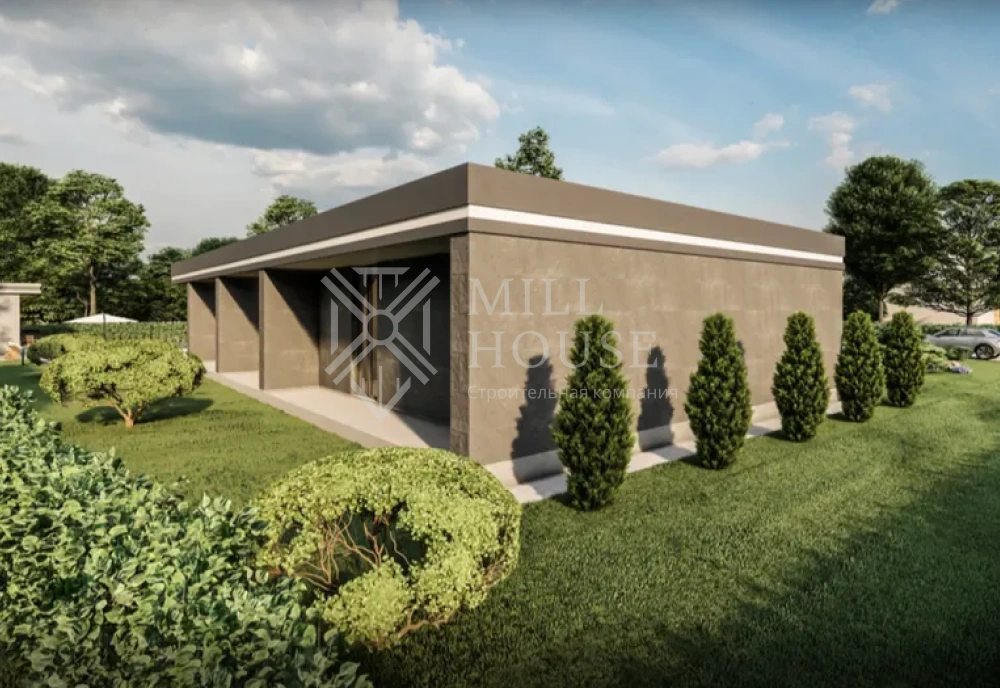 Сердце дома — объединённая кухня-гостиная с выходом во внутренний дворик, который становится естественным продолжением жилого пространства и местом для приятного времяпрепровождения на свежем воздухе. Практичная кладовая рядом с кухней обеспечит порядок и удобство. Рядом располагается кабинет для работы или творчества и отдельная игровая комната, где каждый член семьи найдёт занятие по душе. Дополняют планировку общий санузел и просторный гардероб в прихожей.