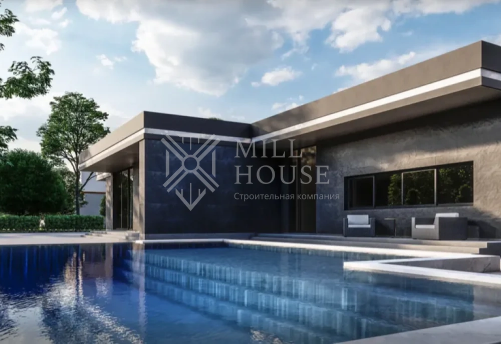 В изысканном оформлении экстерьера ключевую роль играет уличный переливной бассейн площадью 81 м². Его равномерная поверхность, аккуратно покрывающая ступени, становится настоящей жемчужиной участка, создавая эффект плавности и гармонии в каждой детали, напоминая о морской стихии, которой посвятил жизнь и творчество сам Айвазовский.