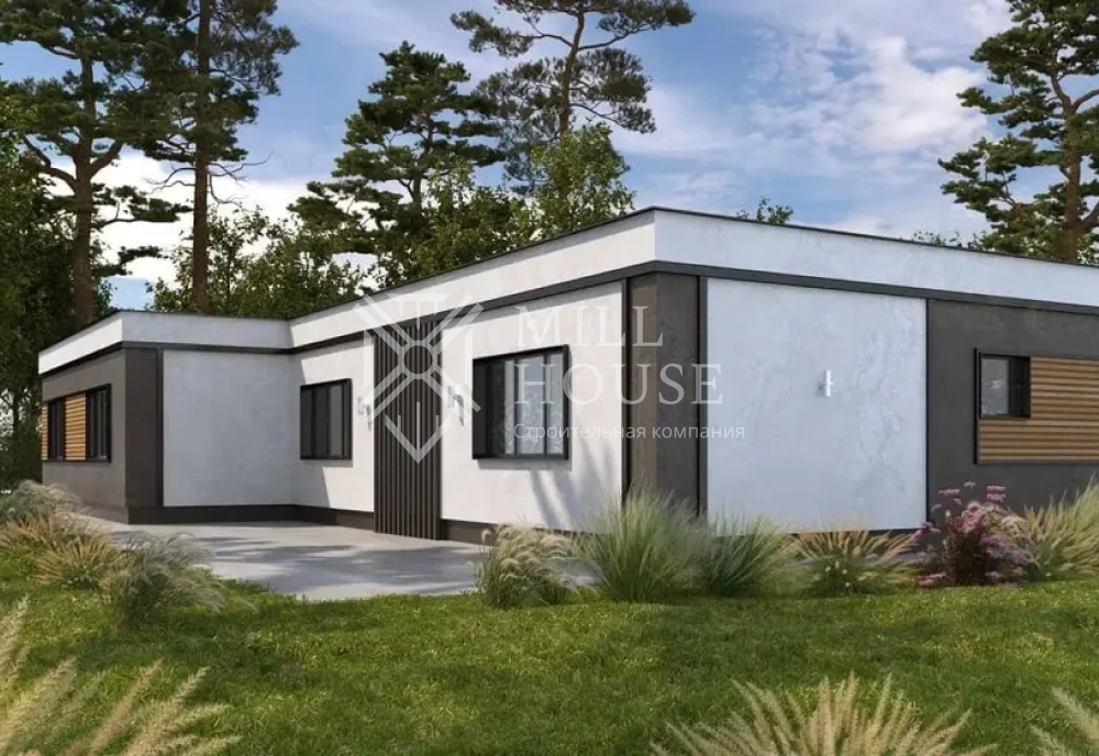 Проект «Маяковский» — современный одноэтажный дом с плоской кровлей, созданный для комфортного проживания семьи из 4–6 человек и