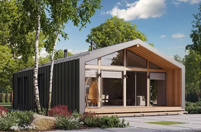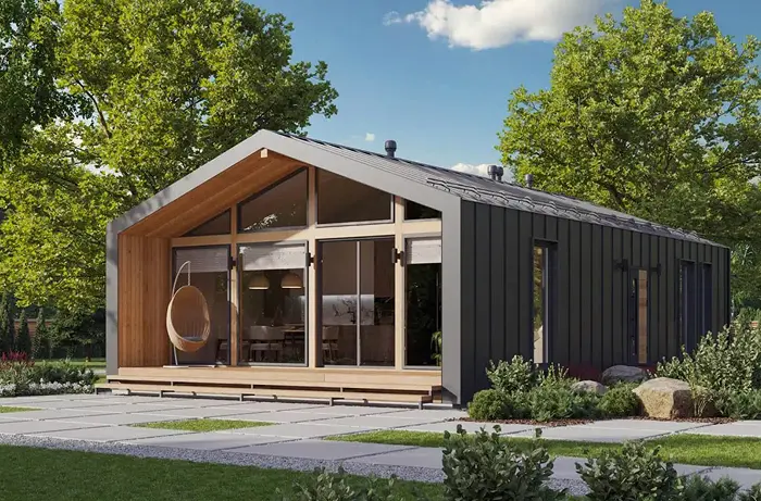 Этот современный каркасный дом отличается компактностью, функциональным дизайном и домашним уютом. Габариты дома оптимальны для небольшой семьи, что позволяет его использовать как в качестве дачи, так и для постоянного проживания за пределами города.