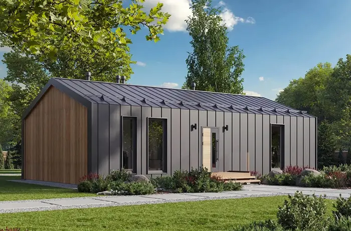 Преимущества дома, возведенного по каркасной технологии, проект одноэтажного дома из дерева и стали: