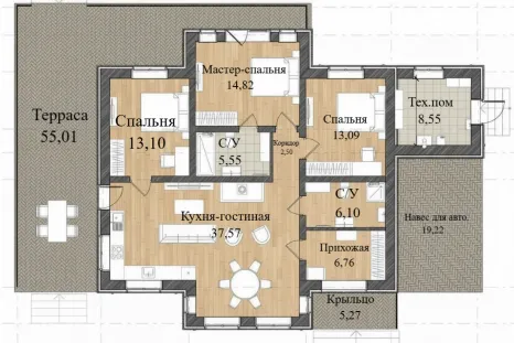 - Терраса — 55,01 м²